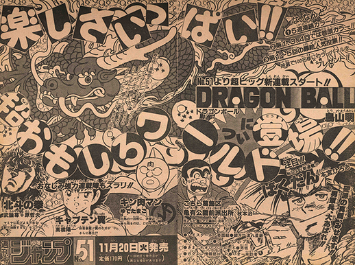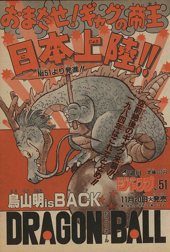 Para celebrar el lanzamiento de la serialización, esta página de título especial fue regalada a 100 lectores. El propio editor pensó que la idea estaba un poco fuera de lugar, e incluso comentó: "¡Es un movimiento audaz!" Parece que ellos también tenían grandes esperanzas en Dragon Ball.