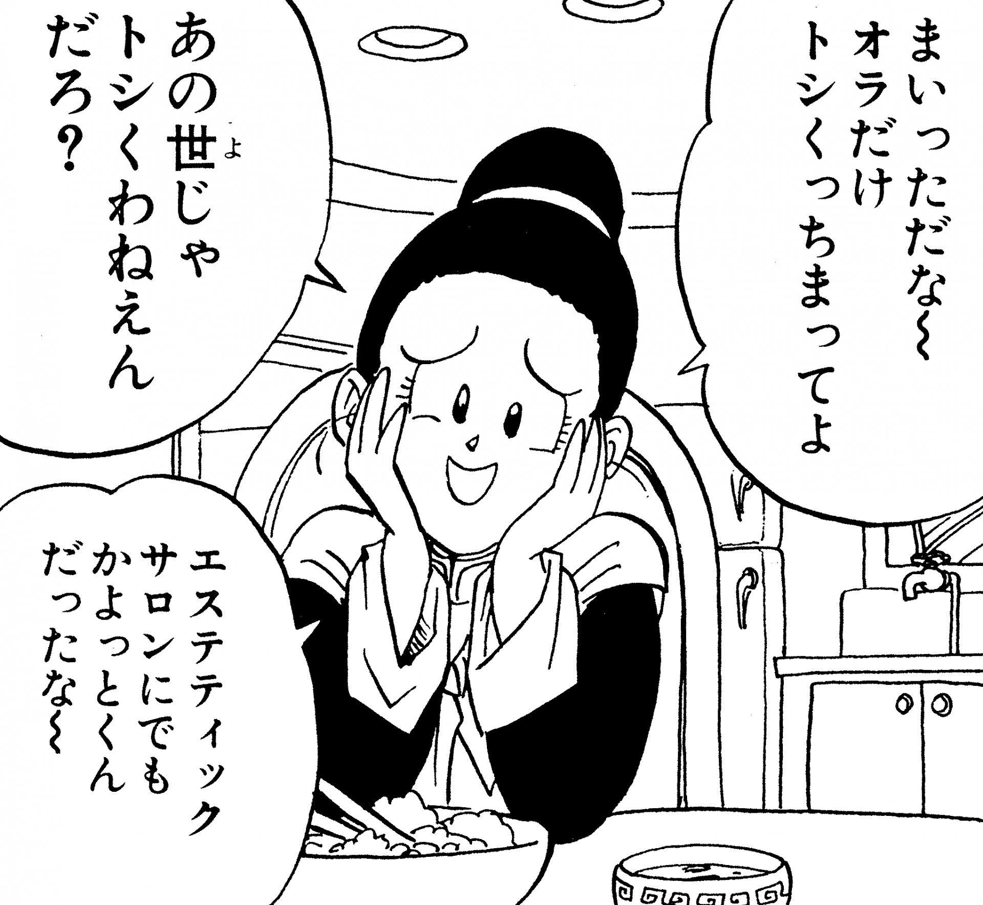 Chichi es la esposa de Goku y la madre de sus dos hijos, Gohan y Goten. Cuida la casa en todos los aspectos, desde las finanzas hasta la cocina, en muchos casos sola debido a las frecuentes y prolongadas ausencias de su marido.