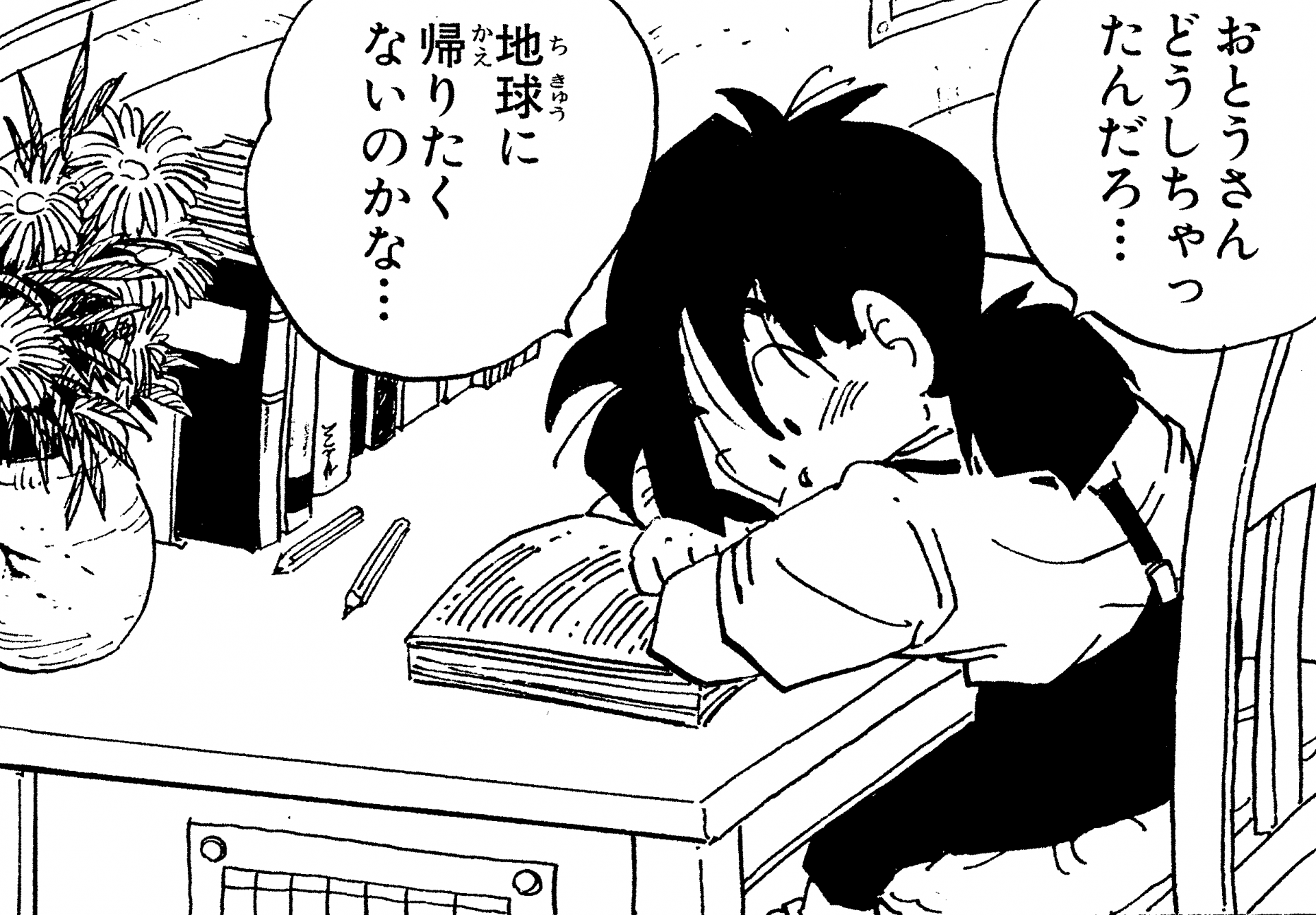 A pesar de todo el tiempo que pasó entrenando y luchando, el hijo de Goku, Gohan, nunca abandonó su sueño de convertirse en académico y, a menudo, se le puede ver en su escritorio estudiando duro mientras participa en batallas épicas.