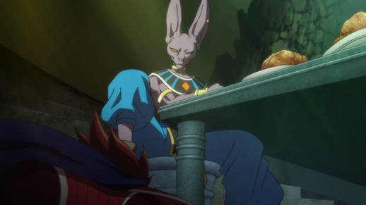Para extraer información sobre el Super Saiyan God de Vegeta, Beerus hace una aparición inesperada en la fiesta de cumpleaños de Bulma. Sin embargo, se distrae rápidamente de su tarea por la abundancia de la deliciosa comida de la Tierra que se sirve allí y se siente abrumado por su deleite.