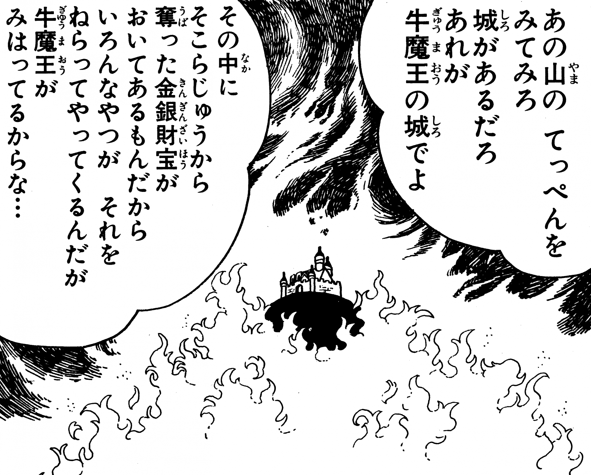 Esta montaña abrasadora está envuelta por un fuego perpetuo. En lo alto de la cima de la montaña descansa el castillo de Gyumao, pero durante mucho tiempo no pudo regresar a casa debido a las intensas llamas que envolvían el área.