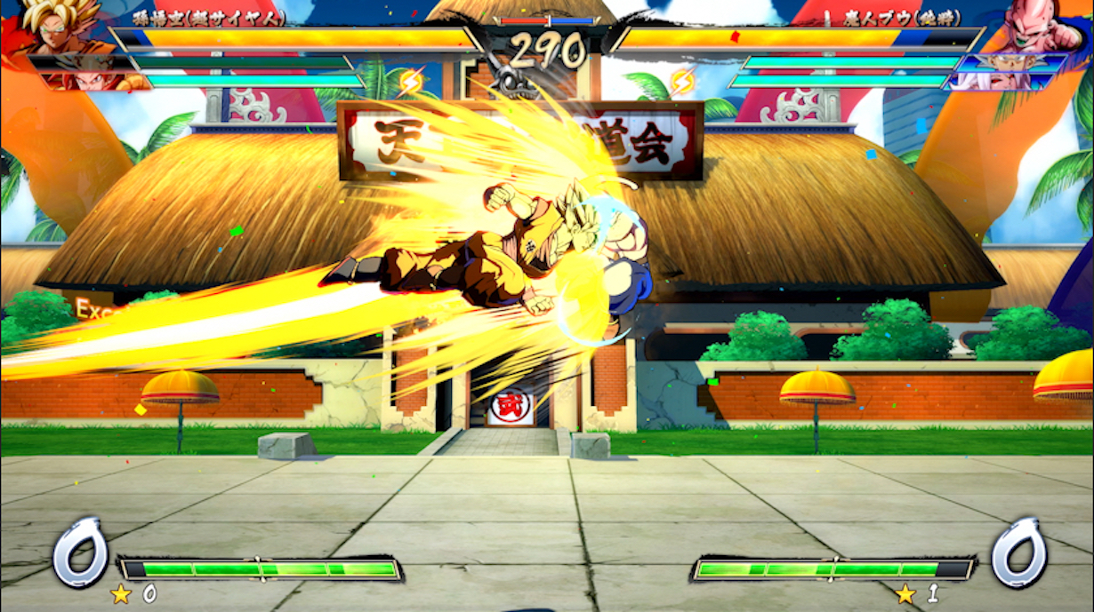 Como estoy seguro de que puedes adivinar, estoy jugando como Goku (barra de salud izquierda) y GO1 es Majin Buu (barra de salud derecha). Sí, recibí una paliza absoluta ...
