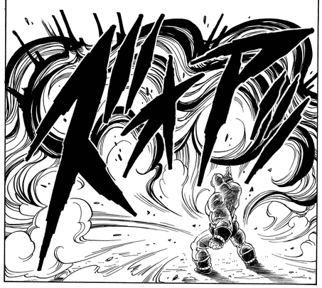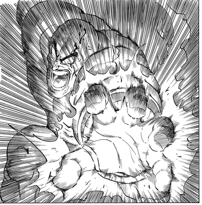 Con el simple movimiento de sus dedos, Nappa provoca una violenta explosión que estalla ante él, destruyendo todo lo que está a la vista, desde edificios hasta personas, y nivelando completamente el área circundante.