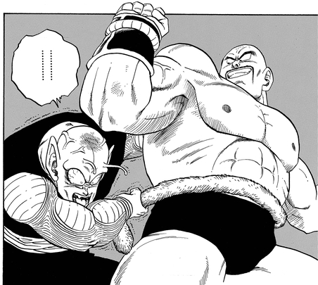 Piccolo aprovechó su conocimiento de las debilidades de Saiyan adquirido en batallas pasadas contra Goku y agarró la cola de Nappa, ¡pero incluso esto resultó inútil debido a que Nappa había entrenado y fortalecido su cola para tal ocasión! Por mucho que Piccolo y Krillin a su vez intentaran resistir, no eran rival para la abrumadora fuerza del guerrero Saiyajin de élite.