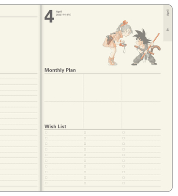 ¡Emprende un nuevo viaje este año junto a Goku y todos tus personajes favoritos de Dragon Ball con el planificador mensual NOLTY Dragon Ball A5 de abril a marzo!