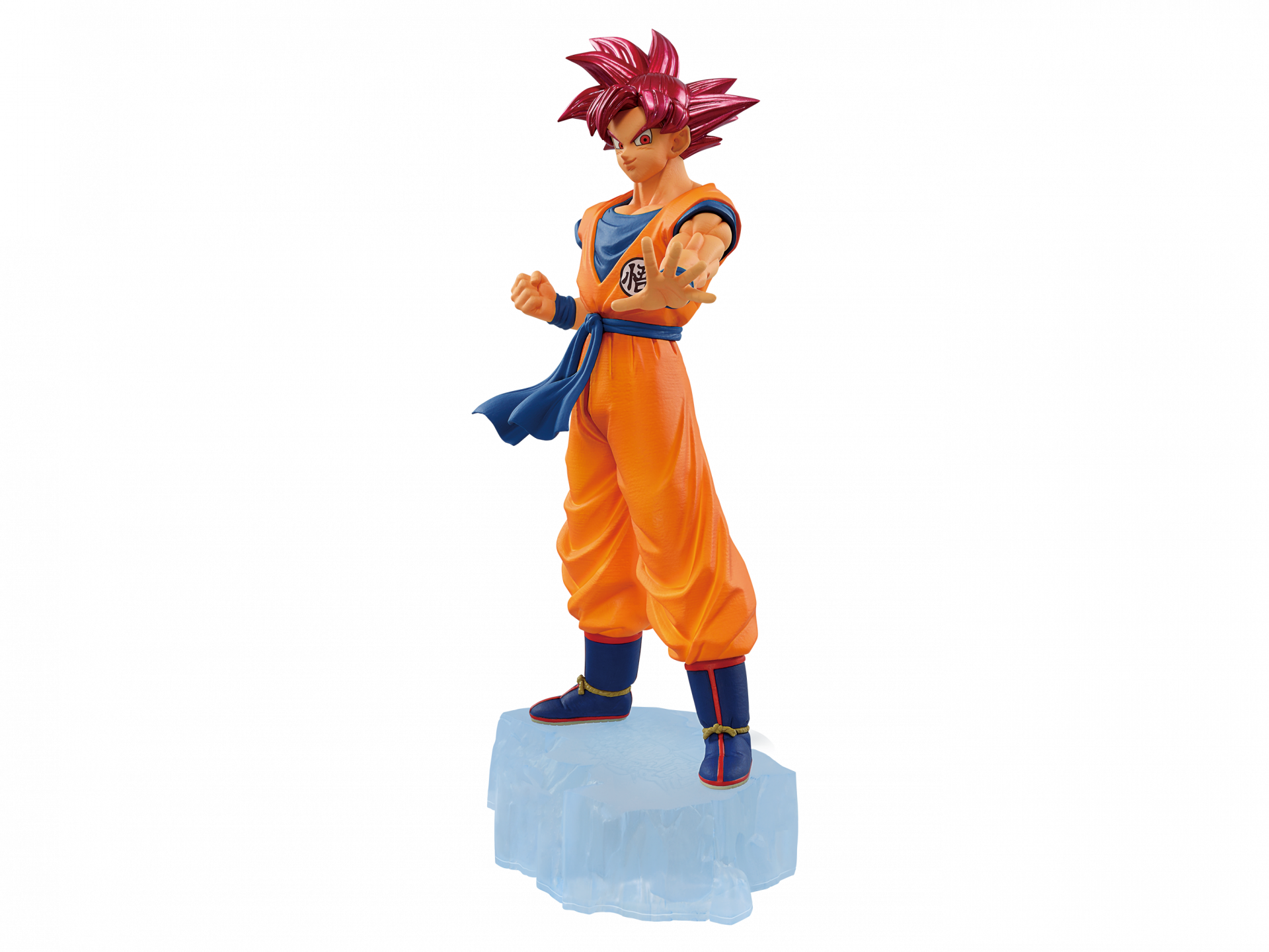 Las dos figuras, Super Saiyan God Goku y Super Saiyan God Vegeta, contarán con bases especialmente diseñadas que encajan entre sí para que puedas exhibirlas una al lado de la otra.