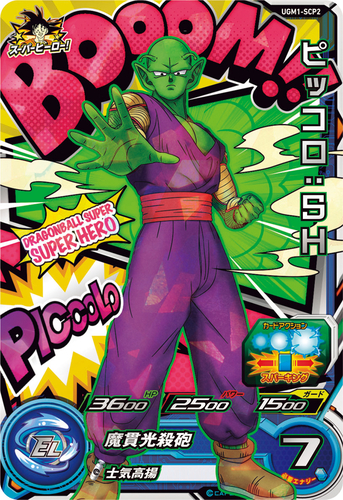 ¡También hay un "Piccolo: SH" más en Ultra God Mission 1 que está disponible como tarjeta CP! Muestra un estilo de arte pop estadounidense y nuevos colores para combinar con la película. ¡Las partes amarillas de sus brazos y su faja roja realmente se destacan!