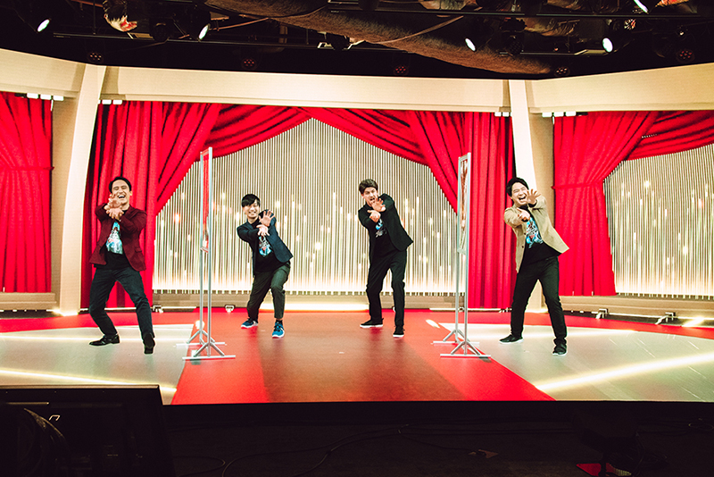 Comenzando desde la izquierda: Tetsuro Kodama, Norihiro Hayashida, Akio Iyoku y el anfitrión, Sacha.
