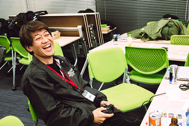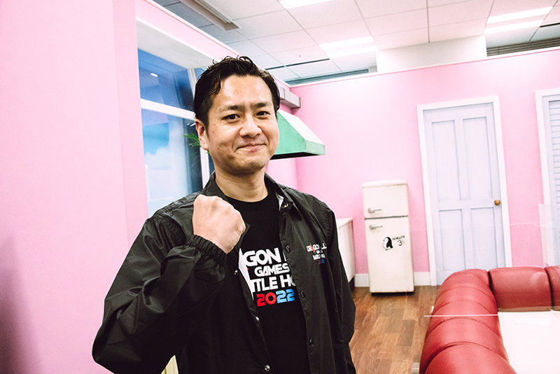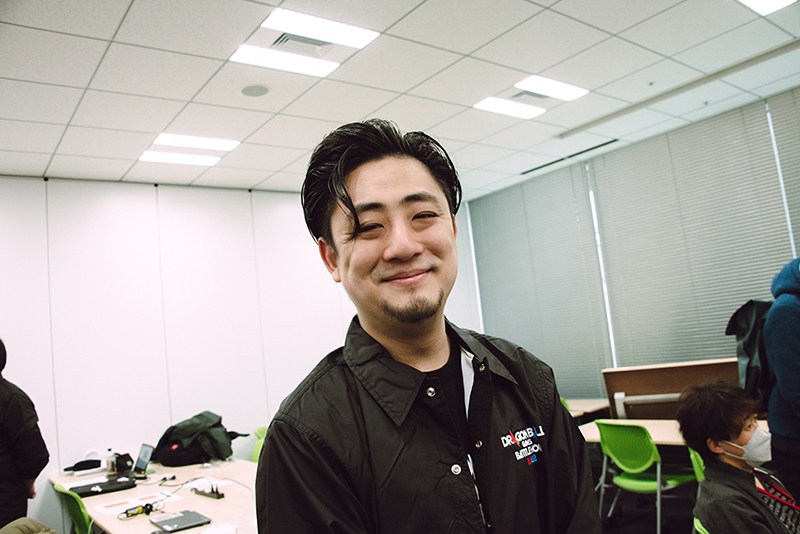 El productor de Dragon Ball Legends , TOSHI, llegó al estudio muy temprano a las 8:30 am. Allí encontró al creador de Dragon Ball Z Dokkan Battle y Dragon Ball Legends, Tezuka, ya absorto en la práctica, a pesar de no estar programado para jugar hasta el DÍA 2.