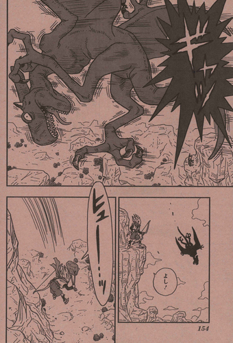 El manga comienza con Toki derribando a una criatura parecida a un dinosaurio conocida como Thundra mientras corre por el aire.