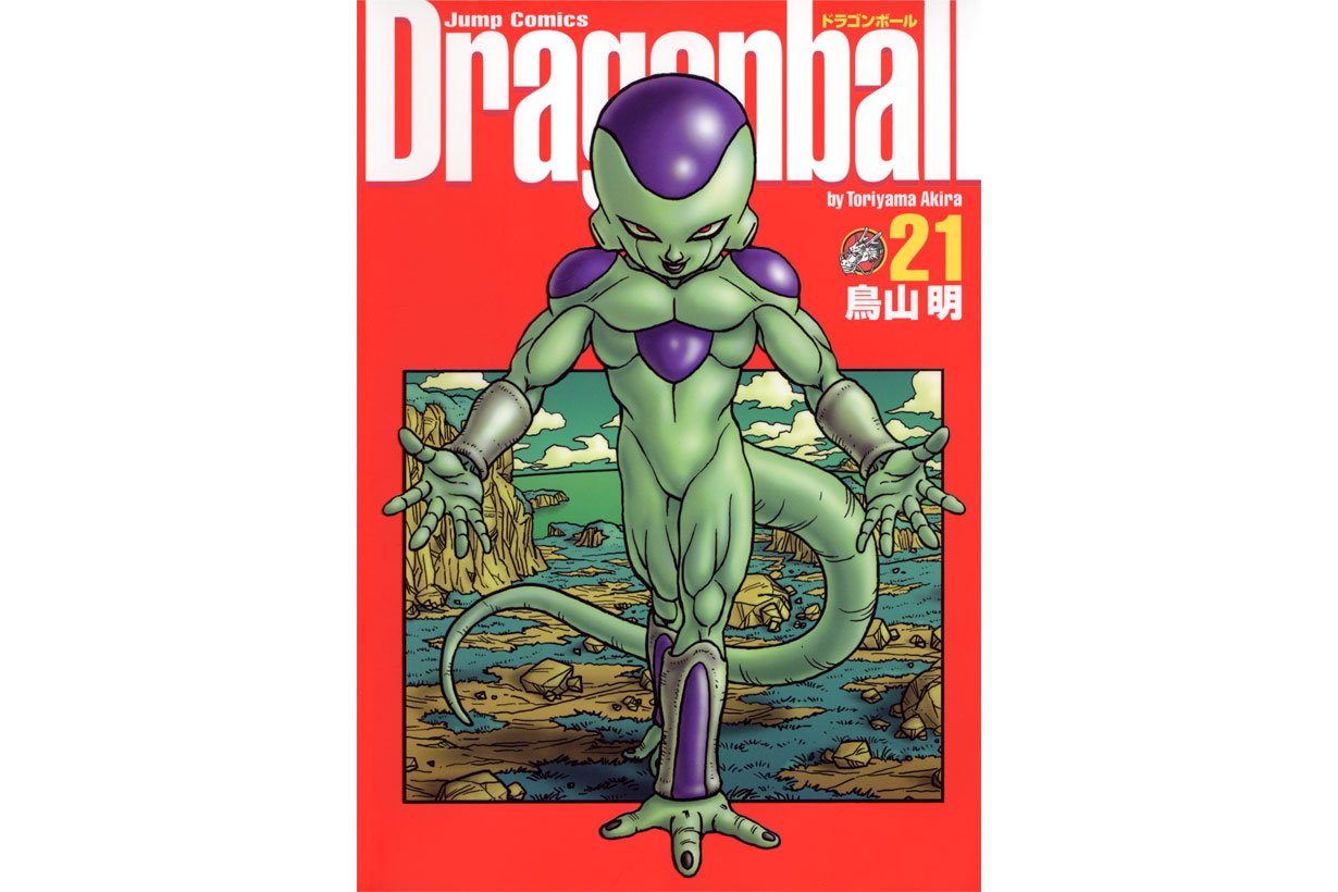 Siempre esperé que me enviara nuevas ilustraciones para cada volumen para que pudiera ver lo que había hecho con él esa vez. El arte del Volumen 20, por ejemplo, en el arco de Frieza , tiene a Frieza de pie en un acantilado, y para el Volumen 21 también incluyó una diapositiva del arte de fondo detrás de Frieza . Pasaría de ser solo personajes a mezclarlos repentinamente con otros elementos. Tuve la impresión de que consideró mucho qué personajes y escenas usar en las portadas, así como exactamente cómo presentarlos.