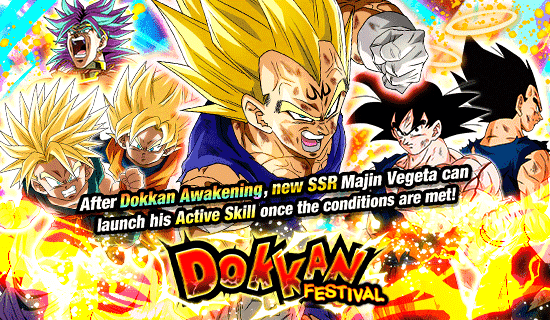 ¡Ya está en marcha una convocatoria del Festival Dokkan para celebrar el Día Saiyan! ¡Esta vez, el nuevo SSR [A Lonely Battle] Majin Vegeta se une a la lucha! ¡Su habilidad de líder puede potenciar a los aliados de la categoría "Majin Buu Saga" y "Vegeta's Family", y el efecto es aún mayor si también pertenecen a la categoría "Gifted Warriors"! ¡Este nuevo Majin Vegeta también obtendrá acceso a una habilidad activa increíble después de ser Dokkan Awakened que puedes activar una vez que se hayan cumplido las condiciones en la batalla!