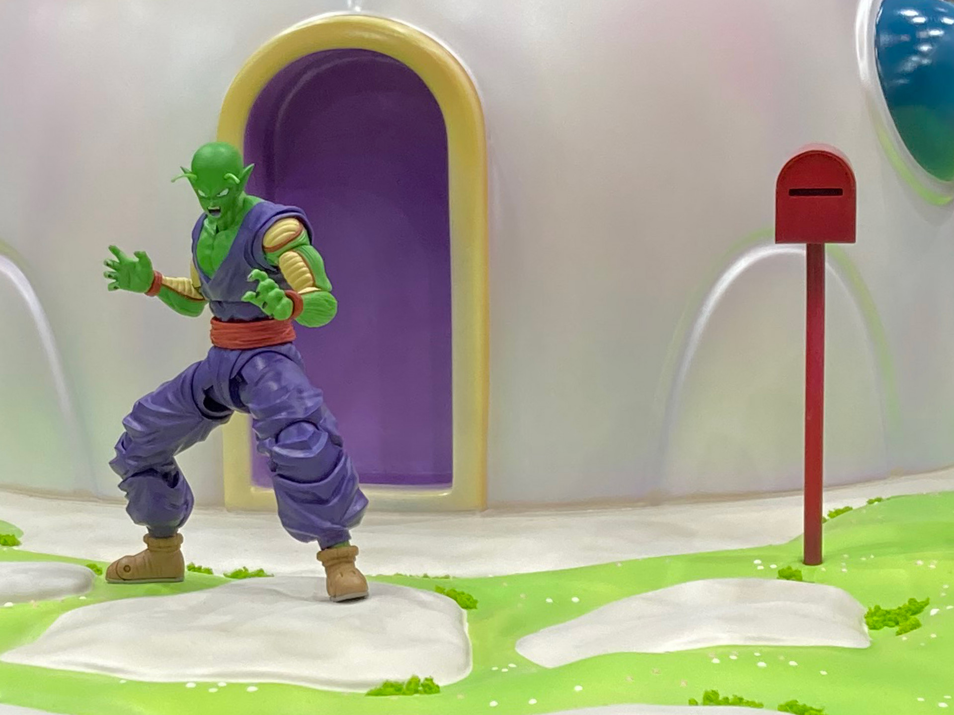Ubicada justo al borde del precipicio de un acantilado y rodeada de escarpados pilares y montañas, uno pensaría que la casa de Piccolo está algo fuera de la red, ¡pero de hecho tiene una dirección registrada! Se ha mantenido fuera del dominio público para ahorrarle a Piccolo la molestia de ser asaltado por fanáticos hambrientos como nosotros a diario, pero como puede ver, tiene un buzón justo al lado de la puerta.