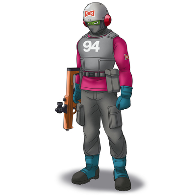Toriyama diseñó el uniforme e ideó todos los detalles finos sobre cómo funciona el rifle láser, y luego el director Kodama fue quien les dio vida y agregó sus propios toques personales.